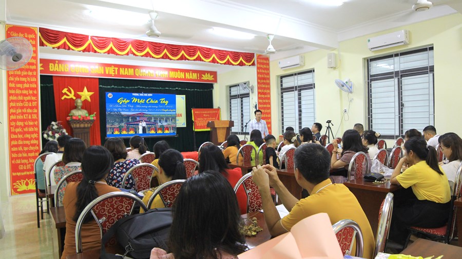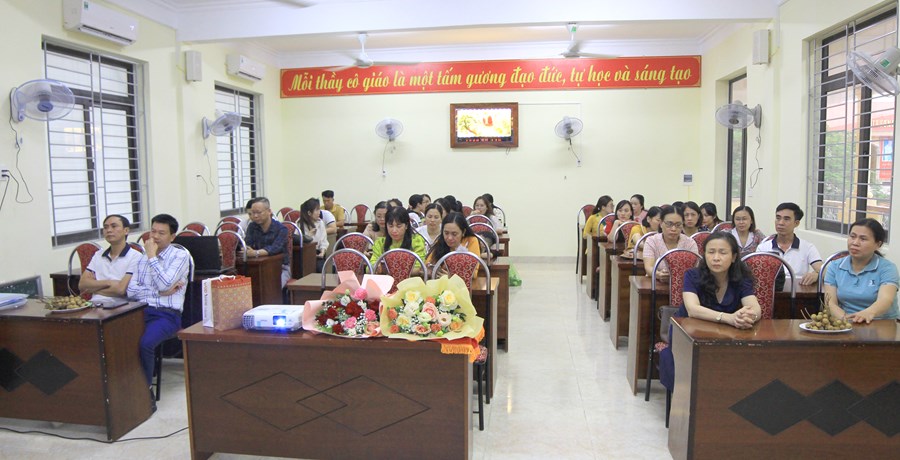 Đồng chí Nguyễn Xuân Thể - phó Hiệu trưởng nhà trường lên chia sẻ, phát biểu về sự nhiệt huyết, tận tâm trong công việc của hai đồng chí, đồng thời khẳng định hai đồng chí là những tấm gương sáng ngời về lòng yêu nghề, sự tận tâm trong công tác để tất cả những đồng nghiệp học tập.