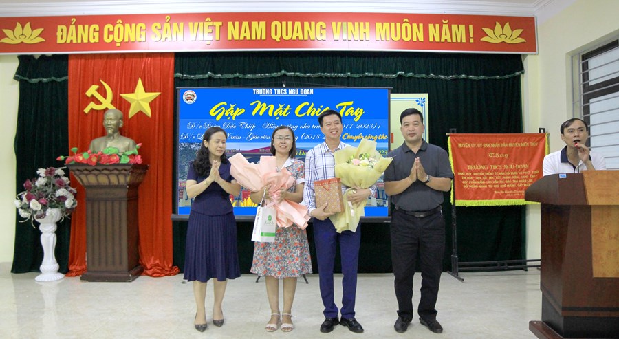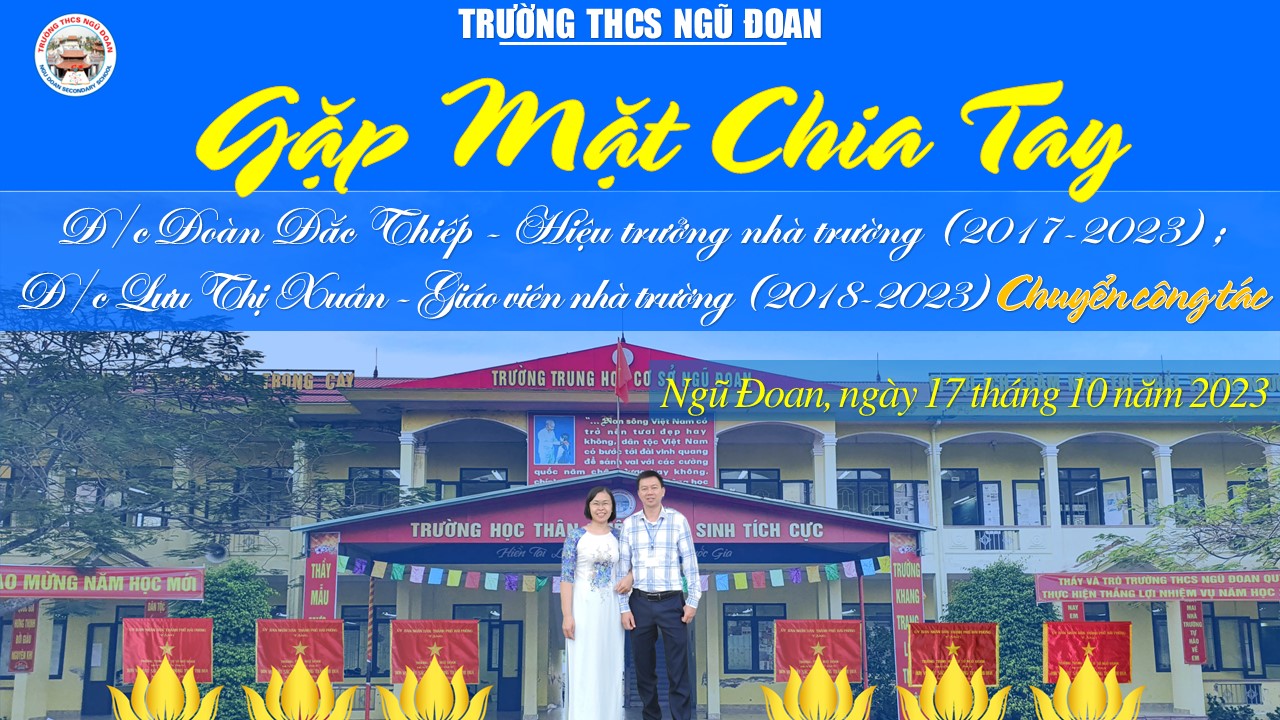 Cuộc đời mỗi con người ai cũng phải trải qua thời gian học tập, đi làm, thay đổi nơi công tác với biết bao kỷ niệm vui, buồn để lại những dấu ấn không thể nào quên. Trong không khí đầm ấm, cởi mở thắm tình đồng nghiệp này, Công đoàn trường THCS Ngũ Đoan đã tổ chức chia tay đồng chí hiệu trưởng Đoàn Đắc Thiếp và cô giáo dạy bộ môn Văn - Sử Lưu Thị Xuân vào buổi chiều ngày 17/10/2023