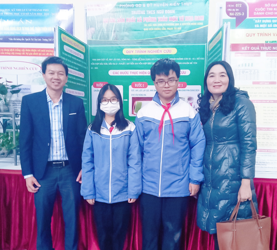 Dự án “Sản xuất xà phòng thảo mộc từ Nha đam” thuộc lĩnh vực hóa sinh của tác giả là em Vũ Phương Anh và Nguyễn Minh Dũng học sinh lớp 9C trường THCS Ngũ Đoan, được bảo trợ của cô giáo Phạm Thị Huệ là 1 trong 3 dự án của phòng Giáo dục huyện Kiến Thụy tham dự vòng chung khảo của cuộc thi khoa học kỹ thuật cấp thành phố dành cho học sinh trung học năm học 2022-2023.