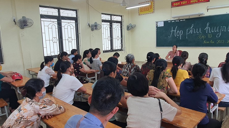 Tại buổi họp, phụ huynh các lớp đã được nghe GVCN báo cáo những kết quả, thành tích của nhà trường, của các em HS trong lớp đã đạt được trong năm học 2021-2022; triển khai Kế hoạch của nhà trường trong năm học 2022 – 2023, đồng thời được trực tiếp trao đổi với giáo viên chủ nhiệm về tình hình học tập, về nội quy, quy định của trường, lớp, từ đó đưa ra các biện pháp hợp lý trong việc giáo dục học sinh.