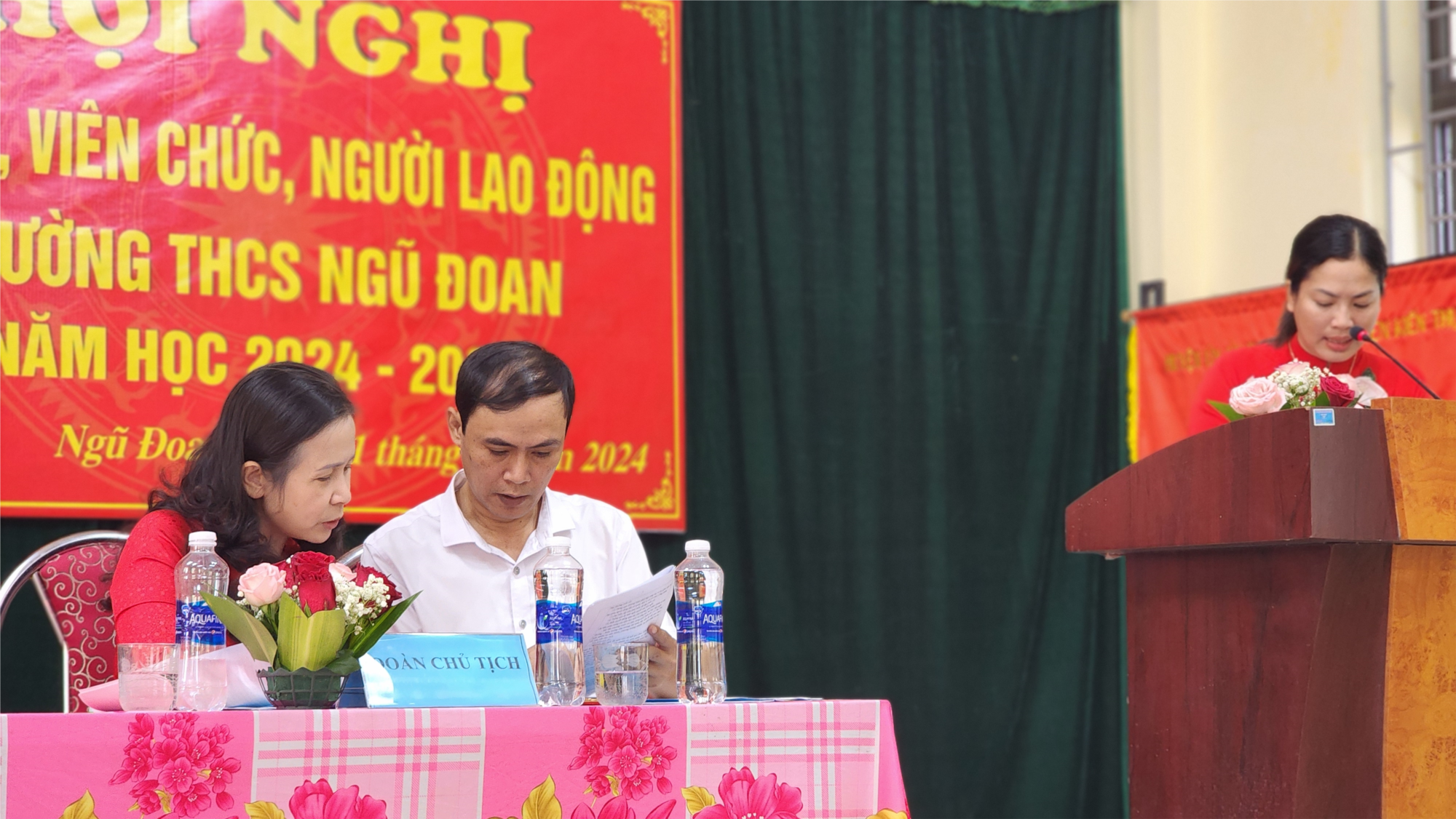Đ/c Phan Thanh Quản- chủ tịch Công đoàn nhà trường thông qua các báo cáo tổng kết phong trào thi đua năm học 2023 - 2024