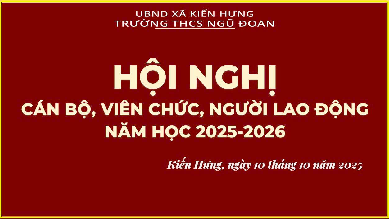 Hội nghị Cán bộ, Viên chức, Người lao động Trường THCS Ngũ Đoan năm học 2025 – 2026 đã diễn ra trong không khí dân chủ, nghiêm túc, đoàn kết và tràn đầy khí thế thi đua mới. Thành công của hội nghị là nguồn cổ vũ, động viên to lớn để toàn thể cán bộ, giáo viên, nhân viên nhà trường phấn đấu hoàn thành thắng lợi nhiệm vụ năm học mới, tiếp tục khẳng định vị thế, uy tín của một tập thể “Kỷ cương – Tình thương – Trách nhiệm – Sáng tạo” trên hành trình nâng cao chất lượng giáo dục địa phương.