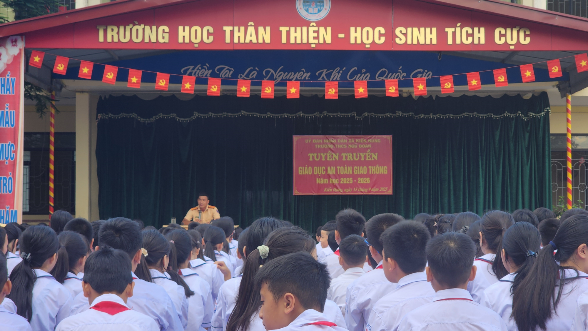 Sáng thứ Hai, ngày 15/9/2025, trong không khí trang nghiêm của buổi chào cờ đầu tuần, Trường THCS Ngũ Đoan đã tổ chức buổi tuyên truyền giáo dục an toàn giao thông với sự tham dự của đông đủ cán bộ, giáo viên và toàn thể học sinh nhà trường.