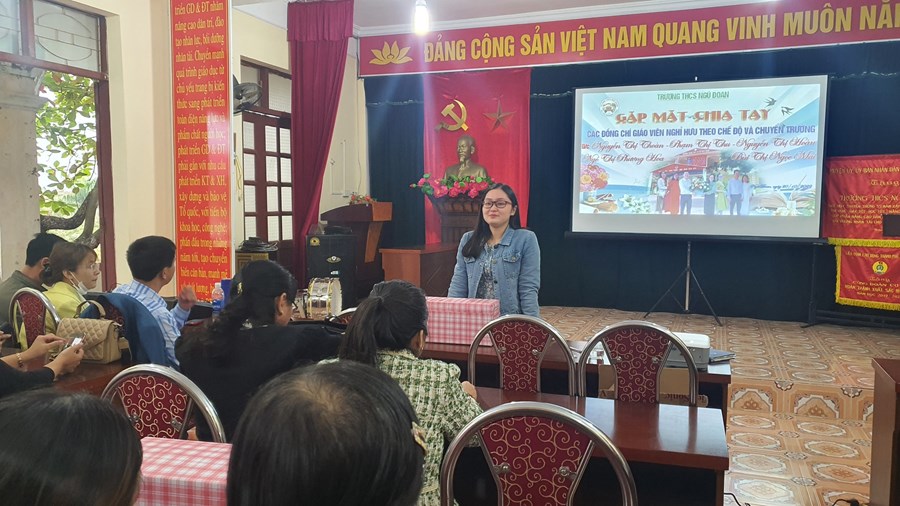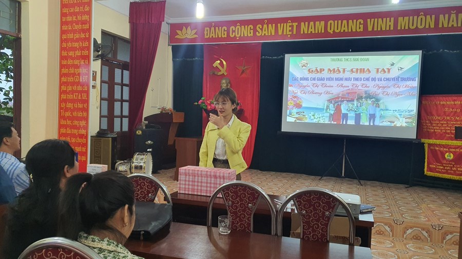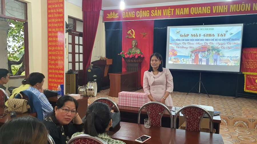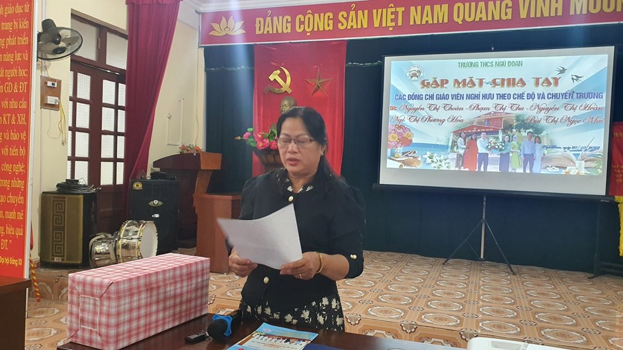 Chiều ngày 20/10/2022, trường THCS Ngũ Đoan đã long trọng tổ chức buổi chia tay cô Nguyễn Thị Thoàn nghỉ hưu theo chế độ của Nhà nước và cô Ngô Thị Phương Hoa, cô Nguyễn Thị Hoàn, cô Bùi Thị Ngọc Mai, cô Phạm Thị Thu chuyển công tác tại trường học mới. Buổi chia tay cũng là sự ghi nhận, cảm ơn đối với các cô giáo đã cống hiến cả cuộc đời mình cho sự nghiệp xây dựng và trưởng thành của mái trường THCS Ngũ Đoan ngày một vững mạnh và phát triển. Buổi chia tay diễn ra trong không khí thân tình, xúc động.Thay mặt ban giám hiệu nhà trường và công đoàn thầy Đoàn Đắc Thiếp - bí thư chi bộ - hiệu trưởng nhà trường cùng thầy Phan Thanh Quản – chủ tịch công đoàn nhà trường đã phát biểu và tặng hoa tri ân sâu sắc đến cô. Bên cạnh đó, thay mặt tập thể hội đồng sư phạm nhà trường - thầy Đoàn Đắc Thiếp đã có bài phát biểu cảm xúc, sự tri ân của Ban giám hiệu, tập thể hội đồng nhà trường, các em học sinh dành cho cô Nguyễn Thị Thoàn cũng như dành tặng cô tặng phẩm đầy ý nghĩa. Dù đã đến tuổi nghỉ hưu được thanh nhàn với cuộc sống hạnh phúc bên gia đình nhưng đến ngày chia tay cô vẫn mang những nuối tiếc về những kỉ niệm đã qua, trăn trở về lớp học sinh hiện tại cô vẫn muốn cống hiến nhiều hơn nữa cho giáo dục nước nhà đặc biệt là vẫn còn muốn gần gũi với những em học sinh thân yêu. Còn đối với cô Ngô Thị Phương Hoa, cô Nguyễn Thị Hoàn, cô Bùi Thị Ngọc Mai, cô Phạm Thị Thu trong suốt thời gian gắn bó với mái trường THCS Ngũ Đoan từng hàng cây ghế đá, góc sân trường đến những em học sinh thân yêu gần gũi như ngôi nhà thứ hai. Giờ đây khi phải chuyển công tác cô cũng không thể nén sự xúc động và lưu luyến với những kỉ niệm khó phai. Buổi chia tay kết thúc với bao tình cảm lưu luyến xen lẫn nỗi buồn. xúc động, bùi ngùi, buồn vui khó tả. Chia tay với đồng chí, chúng tôi - những người ở lại tiếp nối sự nghiệp trồng người mà Đảng và Nhà nước đã giao phó.